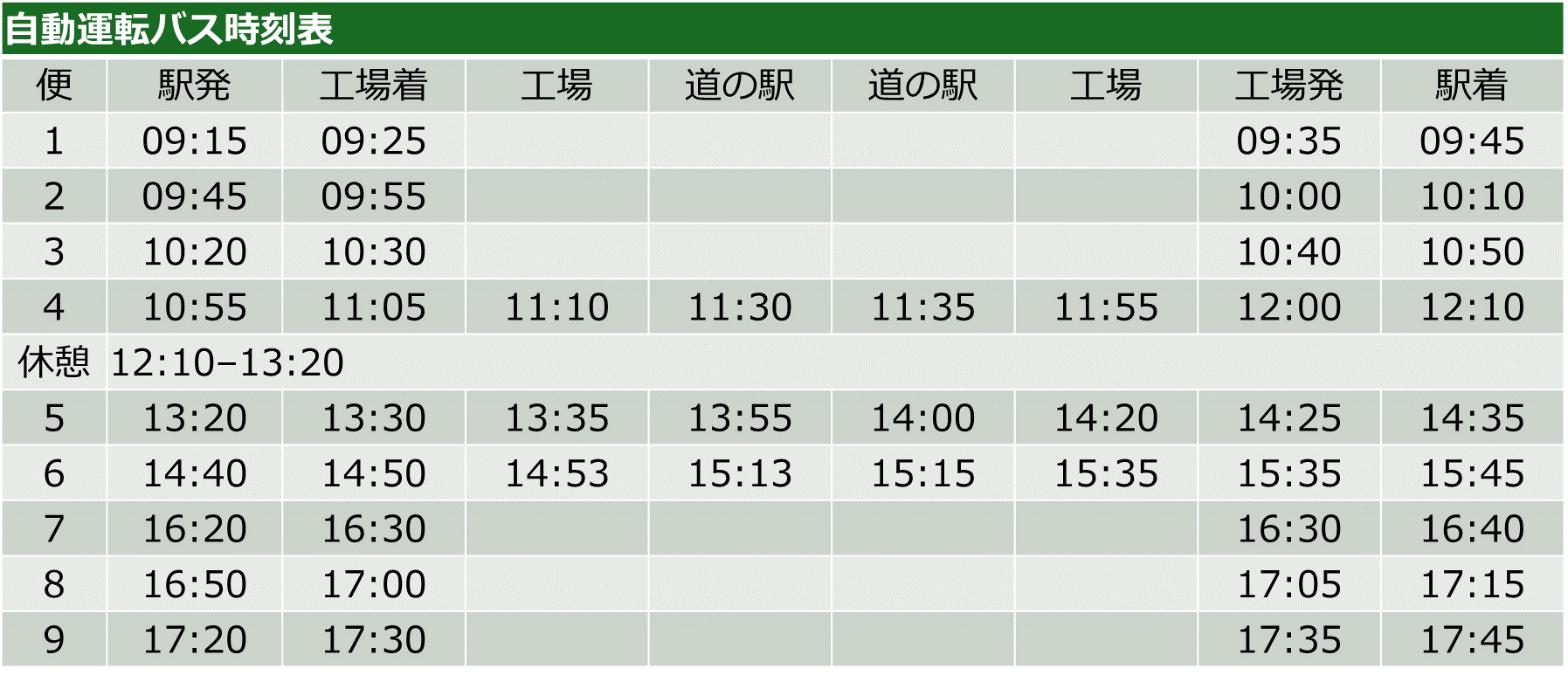 ●時 間: 9:15~17:45(1日9便)