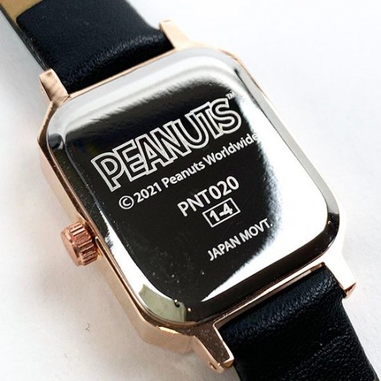 こちらの文字盤には、スヌーピー&チャーリーブラウンがデザインされています。先程と同じくピンクゴールドで、大人の女性にピッタリ。