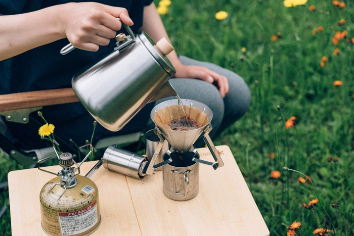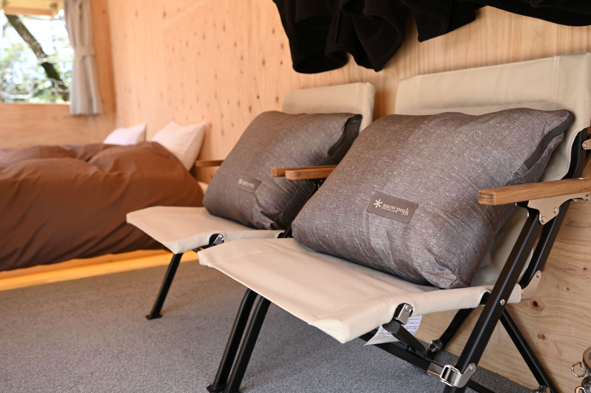 隣接する広々としたプライベートデッキは、自然と調和する開放感あふれる空間。読書やご家族・ご友人との語らいなど、思い思いの時間をゆったりとお過ごしいただけます。電源設備も整っており、スマートフォンの充電なども快適にご利用いただけます。室内には冷暖房を完備しており、季節を問わず安心してご滞在いただけます。また、朝の澄んだ空気の中で楽しむ「本格コーヒー体験」もご用意。スノーピークの製品を使用し、自ら豆を挽き、丁寧に淹れる一杯は、ウッドデッキでくつろぎながら味わう特別な朝を演出します。日常の喧騒から離れ、心ほどけるひと時をお楽しみください。