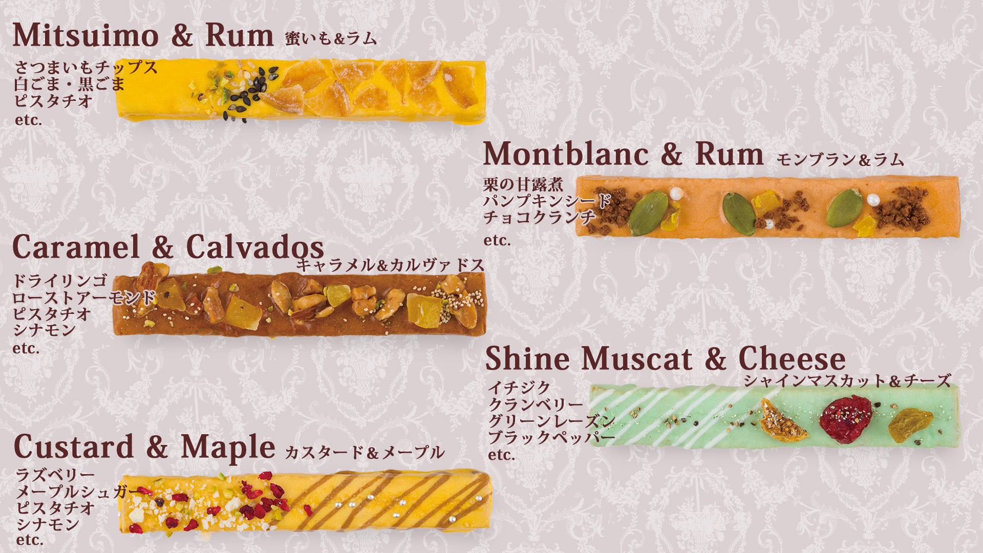 そこで、常温で持ち運びができる秋味のお菓子をおつくりしました!蜜芋やモンブランなど、秋の味覚を使用したラスクです。