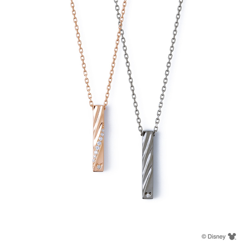 表情の異なるひねりの重なりが美しい、バータイプのペアネックレス。