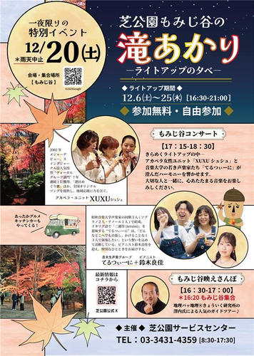 【12/20開催】「芝公園もみじ谷の滝あかり―ライトアップの夕べ―」 もみじ谷コンサートがさらにグレードアップ!