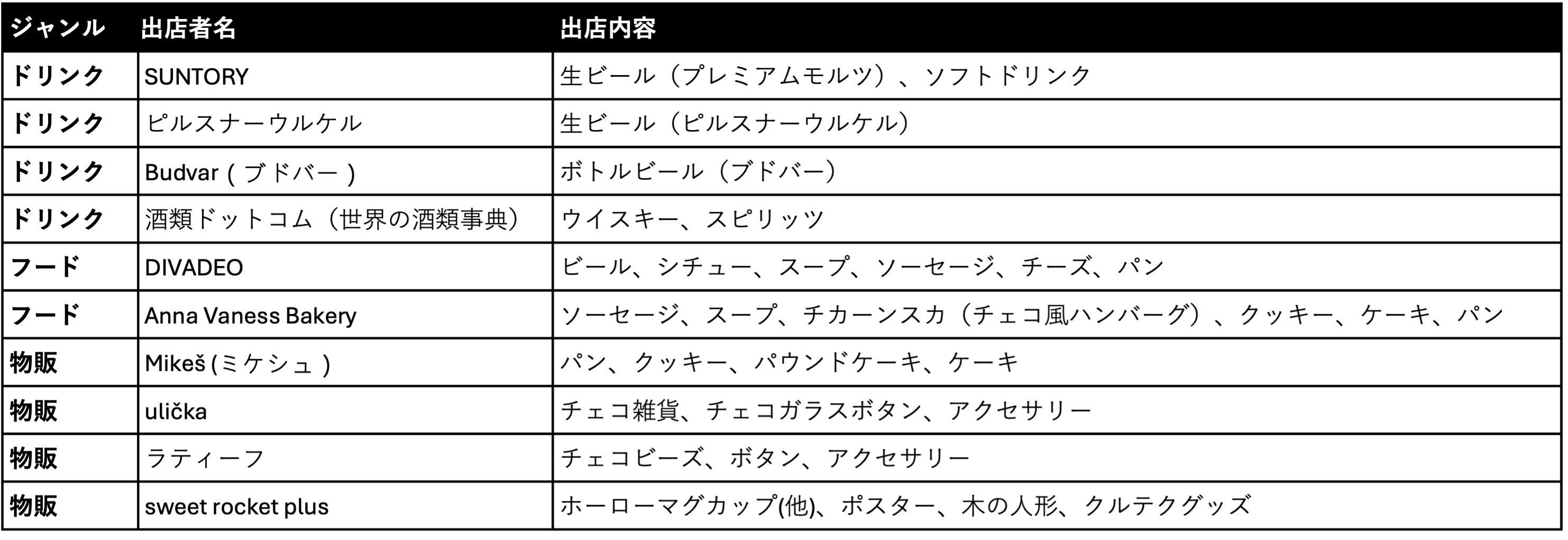出店者一覧(2024年9月24日現在)