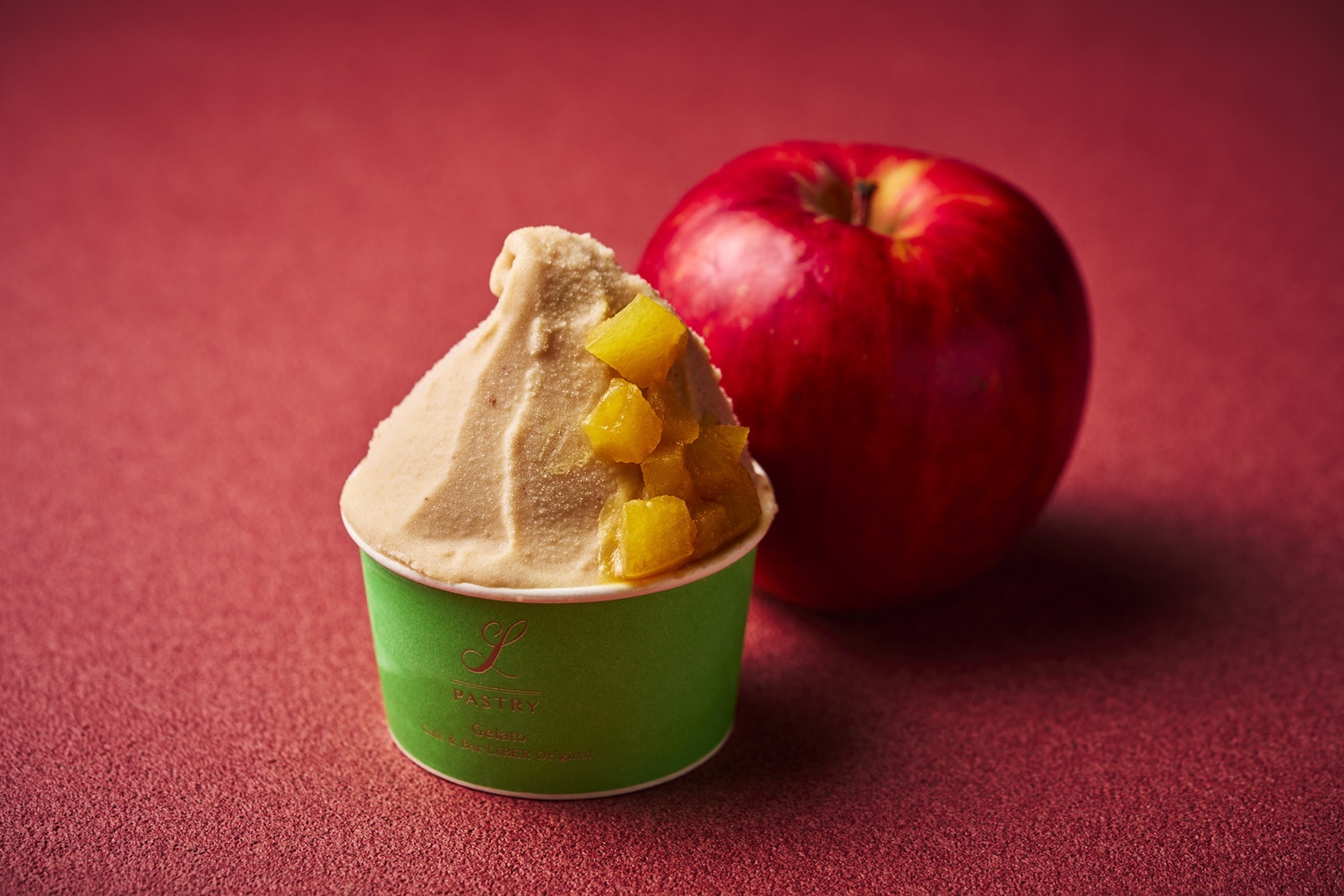 りんごの優しい甘みと、マスカルポーネのなめらかなコクを合わせた、やわらかな味わいのジェラート。ほんのりスパイスの香る上品なフレーバーが、口の中に広がります。