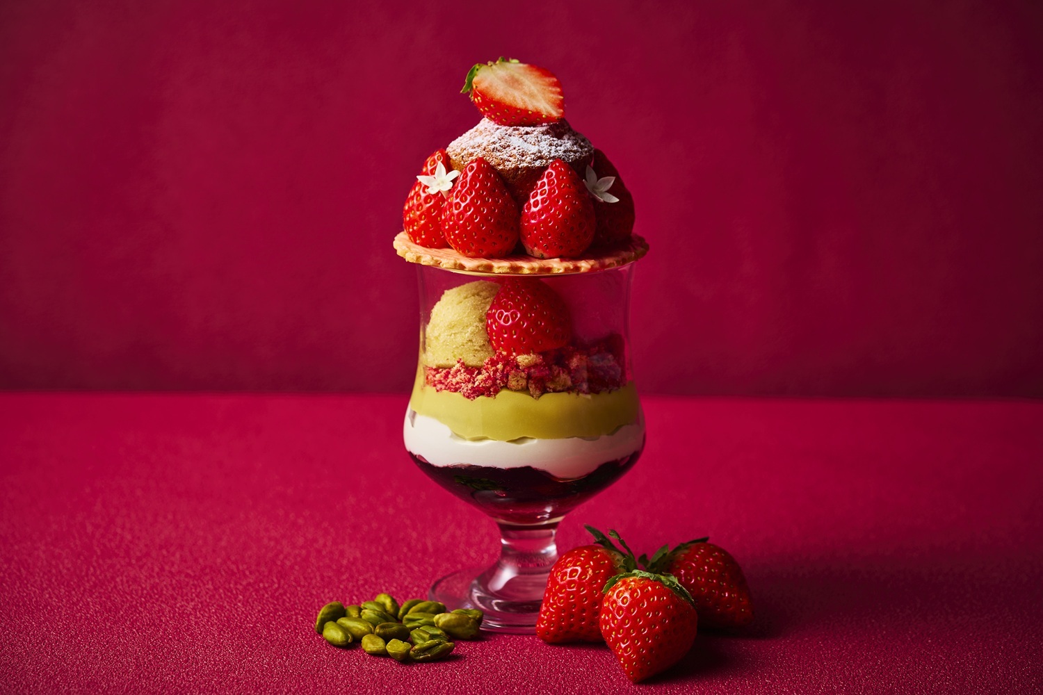カフェメニューでは、新鮮な苺の赤が艶やかに映える季節感溢れるパフェをご提供。さらにアジア初のジェラート世界チャンピオン・柴野大造氏監修の、濃厚で繊細な味わいのジェラートからも新味が登場。弟・柴野幸介氏が手掛け、2024年に国際的なジェラートの祭典で優勝を果たした至高の一品もご用意しております。