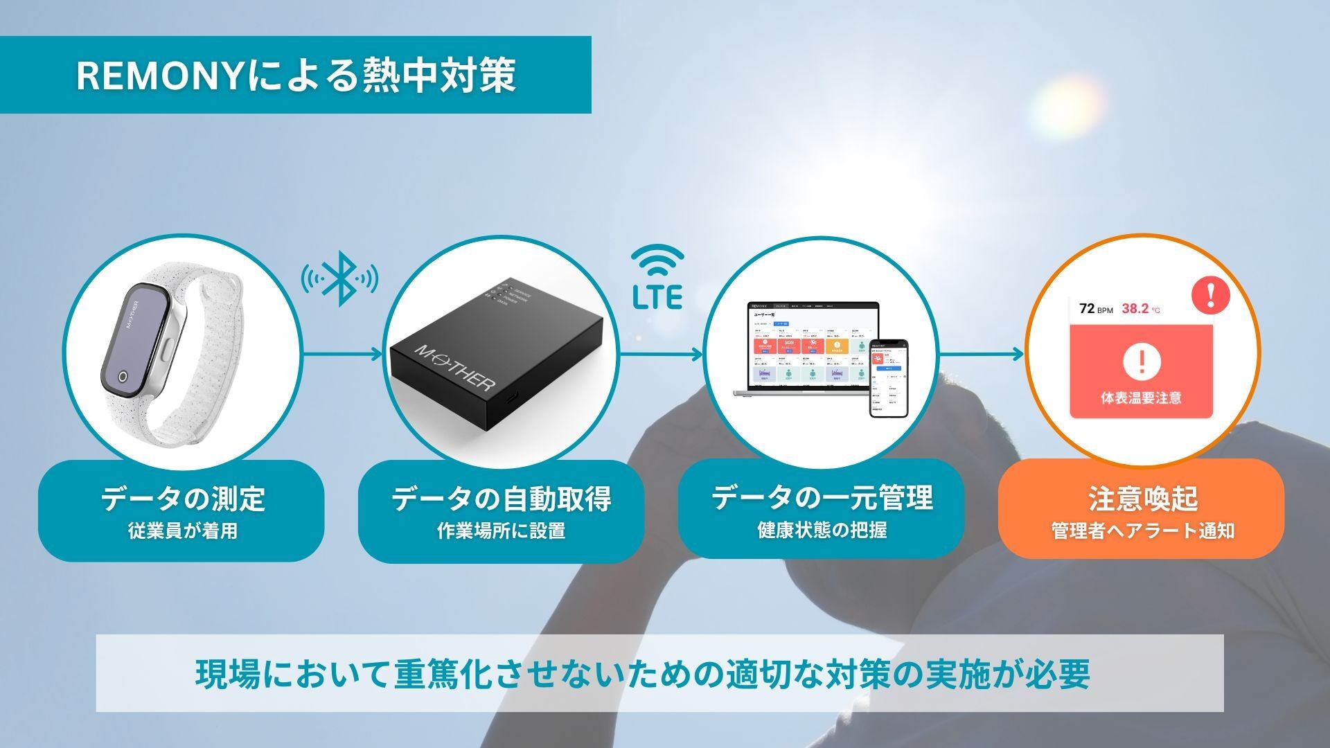 【熱中症対策義務化へ対応】製造・建設業向け遠隔体調管理システム「REMONY」特別レンタルプランを開始!