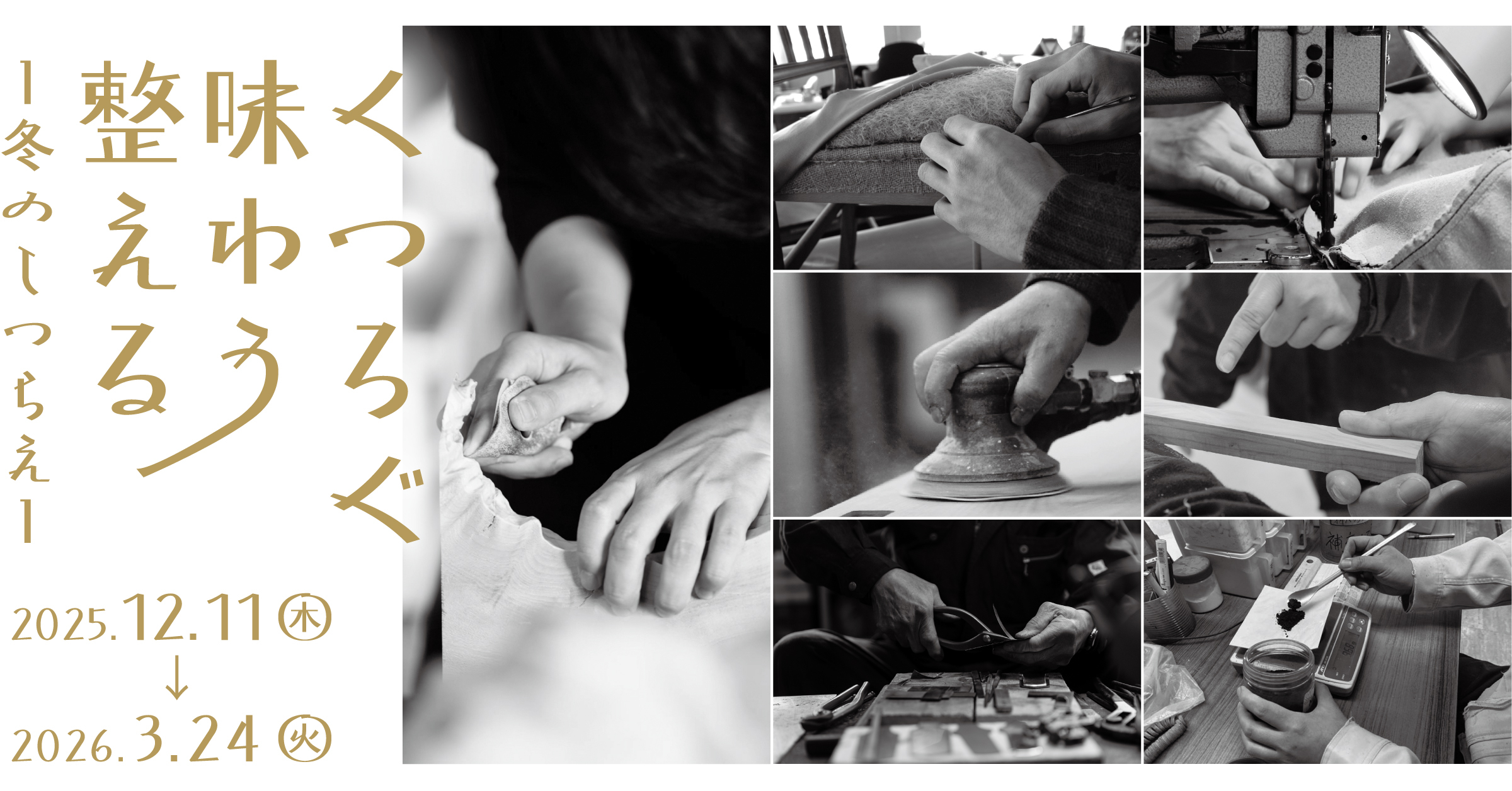 職人の手から生み出され、私たちの暮らしを支える「もの」たち。培われた技術と経験、そして思いがそれらに宿ります。本展示では、職人の「手」に着目し、作られたもののあたたかみ、背景にあるストーリーを伝えます。