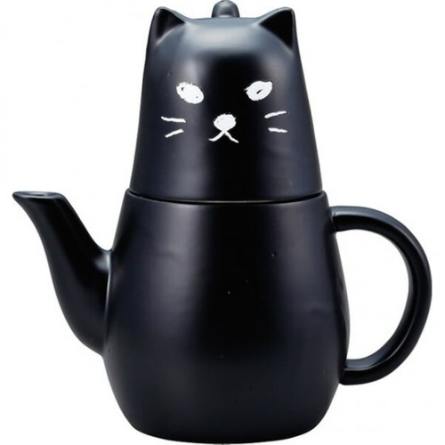 こちらはティーフォーワンと呼ばれる1人用のティーセットです。ブラックカラーがカッコいいですよね。汚れも目立たず使い勝手も良いです。なんとお顔部分が外れてコップに変化します。お耳の部分が足代わりになってちょっとクスっと笑える食器なんです。