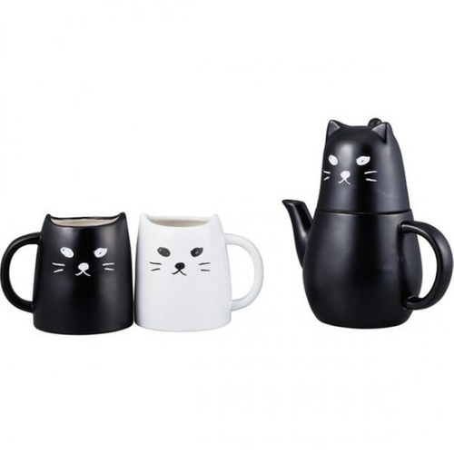 こんな雨の日は猫食器。黒猫と白猫食器で優雅なティータイムはいかがでしょうか?ティーフォーワンとマグカップはセットでどうぞ。焼き物感を楽しんで