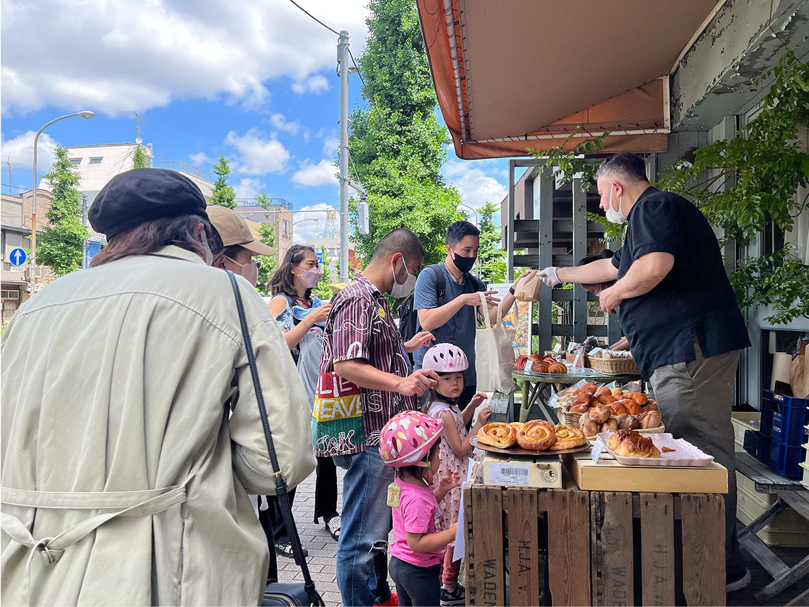 「目黒マルシェ」の特徴は、目黒通りという公道で行われるストリート・マルシェであることです。海外旅行中、街中に突如現れた海外のマルシェに感動して、そんな日常のサプライズを日本でもつくりたいという想いがきっかけで始まりました。