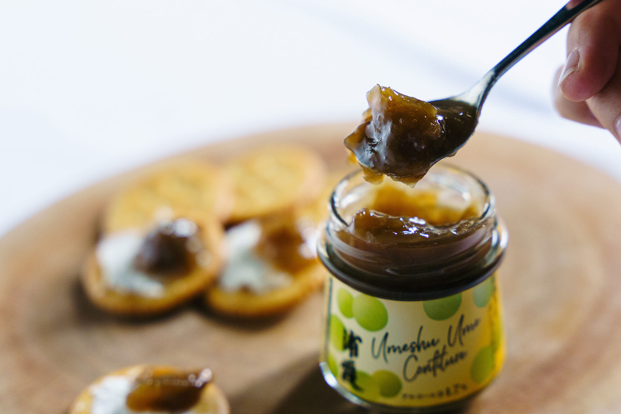 オール宮城県産にこだわり、岩出山と蔵王の梅「白加賀」と、宮城県産米「まなむすめ」で醸した純米原酒を使い、宮城県塩釜の本社蔵で低温長期熟成を図り製造した「浦霞の梅酒」はもちろん、原料である「梅酒うめ」にも日本酒ならではの風味が活きています。その味わいをベースに、梅本来の旨みを存分に感じられるコンフィチュールに仕上げました。