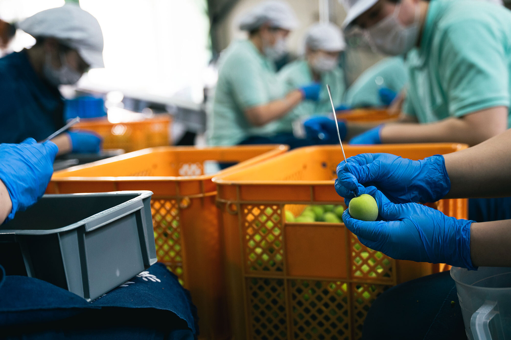 「浦霞の梅酒」の梅は地元・宮城にこだわる。2.6tの梅のヘタを手作業で取る