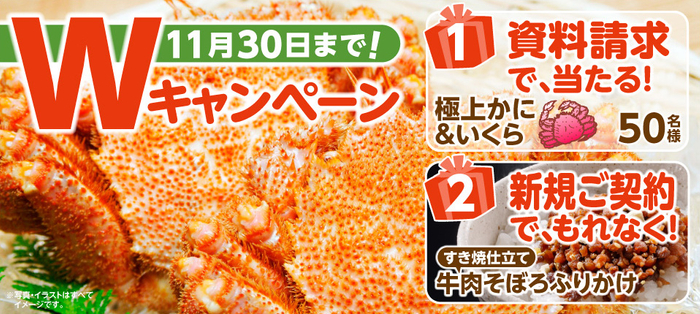 死亡保険・医療保険の資料請求で「極上かに&いくらセット」が抽選で当たる!~新規ご契約でもれなく「すき焼仕立て 牛肉そぼろふりかけ」をプレゼント~