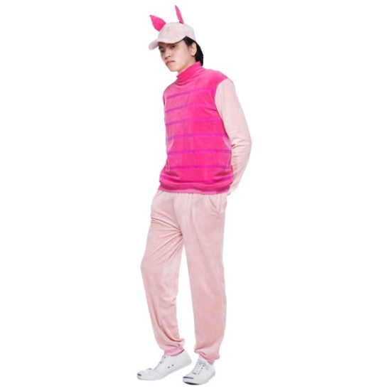 ピグレットになりきれるピンク色のコスチュームと、耳付き帽子で、女性から「かわいい~!」ともてはやされること間違いなし!