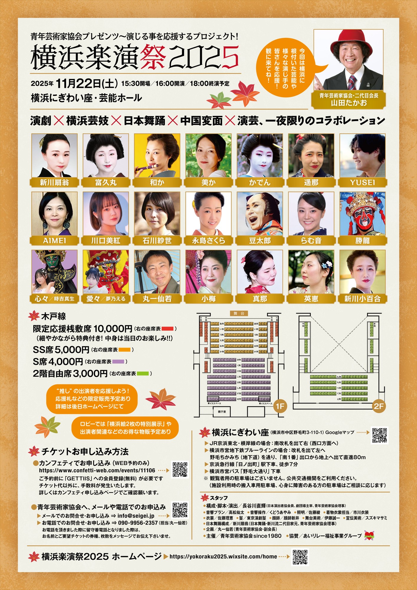 演じる事を応援するプロジェクト!『横浜楽演祭2025』開催決定! 演劇、横浜芸妓、日本舞踊、中国変面のほか様々な芸能が1本のストーリを紡ぎ芸術の秋の一日を彩る