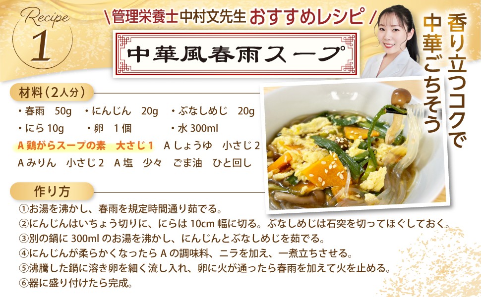 ・【スープに】 中華風春雨スープ、卵スープはもちろん、ポトフやミネストローネのベースとしても。