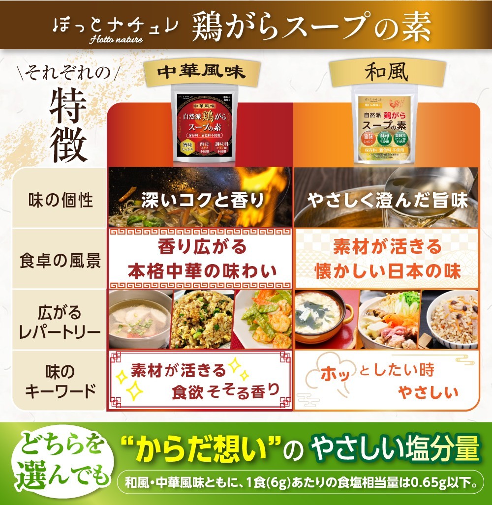先行して同コンセプトにて発売している【自然派 鶏がらスープの素「和風味」】は、