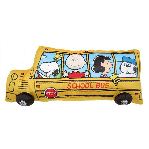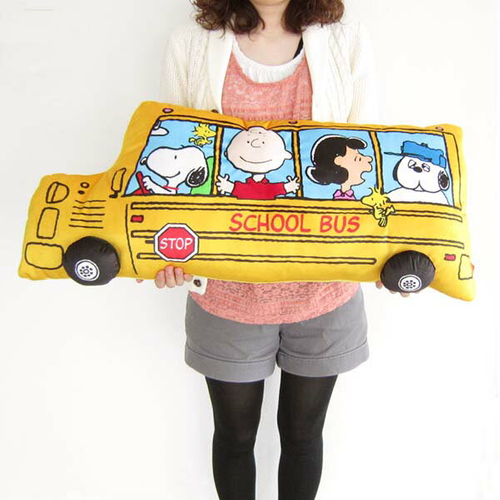 1つ目は、スクールバスのクッションです。運転手はなんとスヌーピー!ルーシーやオラフの顔も見えますね♪みんな楽しそうです。ビタミンカラーの黄色は、元気をもらえますよね。