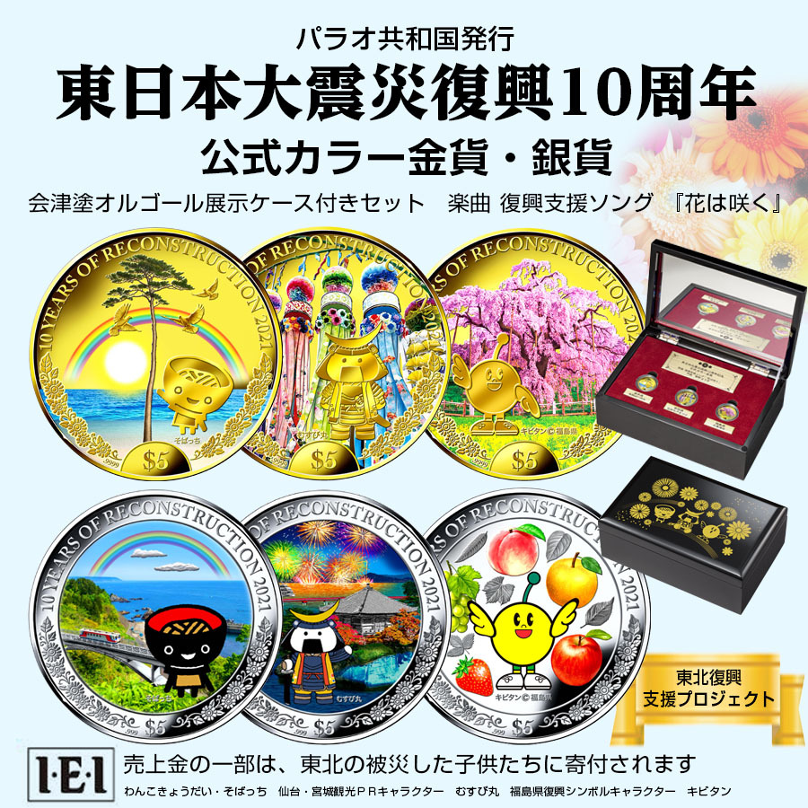 「東日本大震災復興10周年 公式カラー金貨・銀貨」は、会津塗オルゴール展示ケース付きセットで、I・E・I オリジナルショップにて好評予約受付中です。