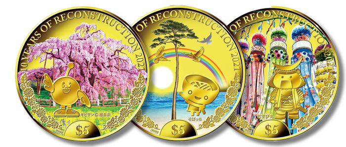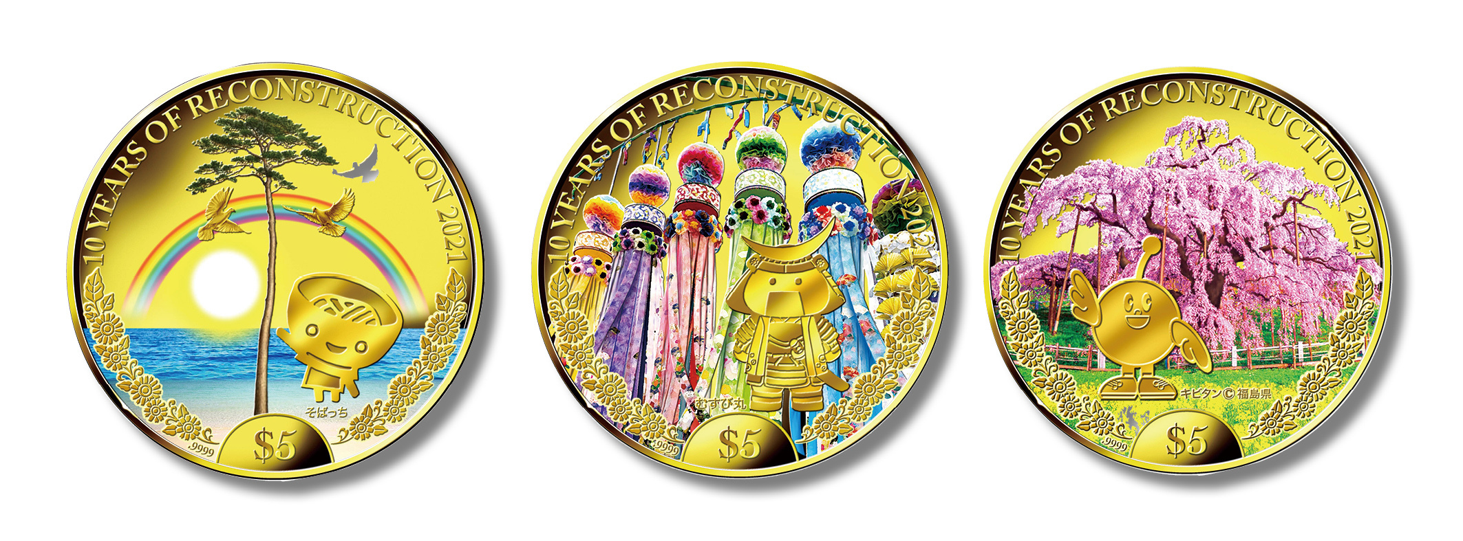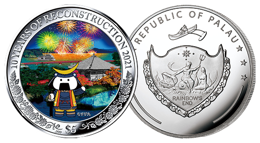 「東日本大震災復興10周年 公式カラー金貨・銀貨」が発行! 復興のシンボルや美しい風景をうつした、特別な純金・純銀の公式貨幣です。