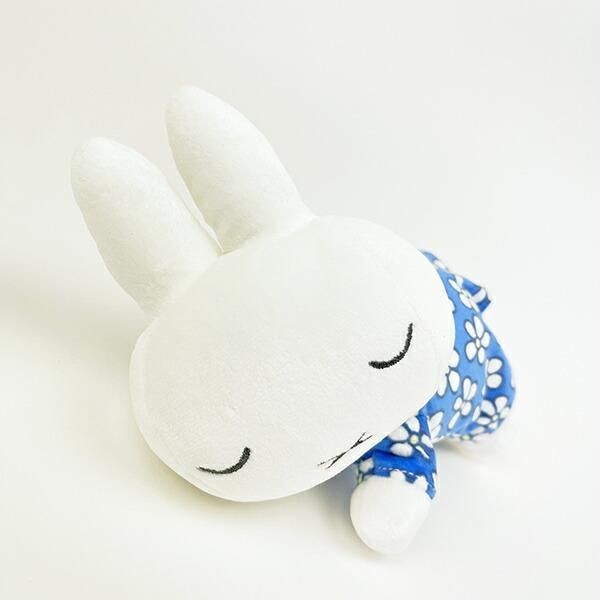 まずご紹介するのは、「ミッフィー miffy ブルーナ フラワードレス すやすやフレンド ぬいぐるみ(M)」。サイズは、12cm×19cm×1.5cm。ブルーナカラーの落ち着いた青に、控えめなお花柄。派手すぎず、でもしっかりとミッフィーらしさが感じられるデザイン。