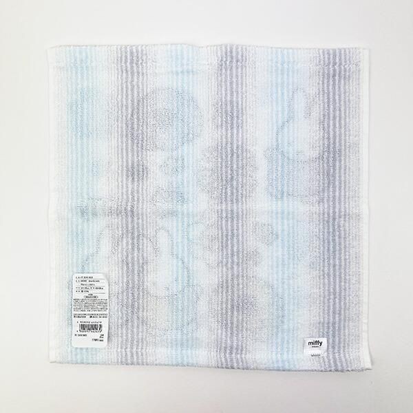 タオルの地には、やわらかなブルーを基調に、さりげなく描かれたミッフィーの姿が。綿素材で肌ざわりも良く、吸水性もばっちり。手をふいたときの柔らかな感触に、ちょっとした幸福感を覚えるはず。\ 洗っても型崩れしにくく、デイリー使いに嬉しい丈夫さも魅力のひとつです。