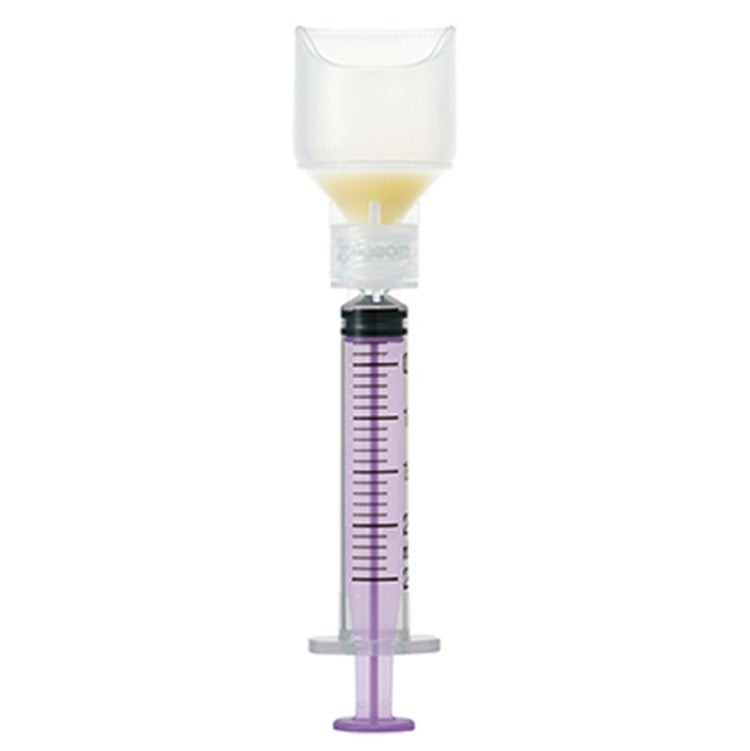 初乳採取のために使われるシリンジは「経腸栄養シリンジ」と呼ばれる、栄養関連のケアに使われるシリンジが用いられ、Precious Dropの使用の際にも必要です。