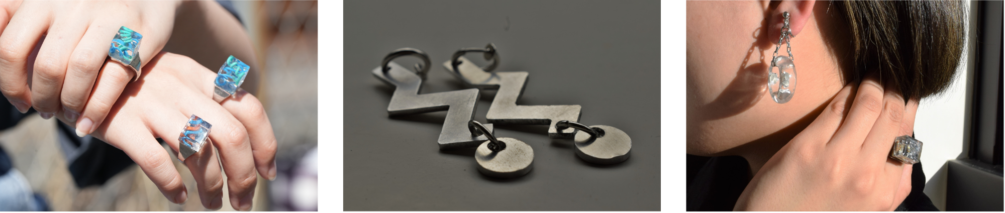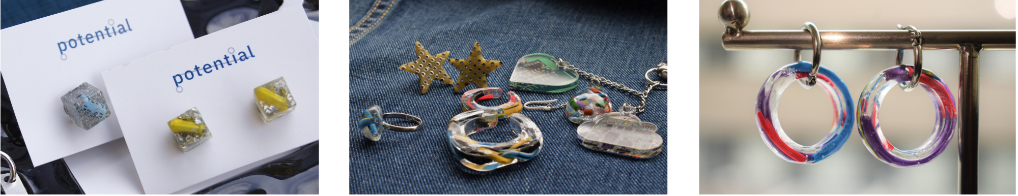 電子廃材を再利用し、ピアスや指輪などのアクセサリーを制作・販売しています 。