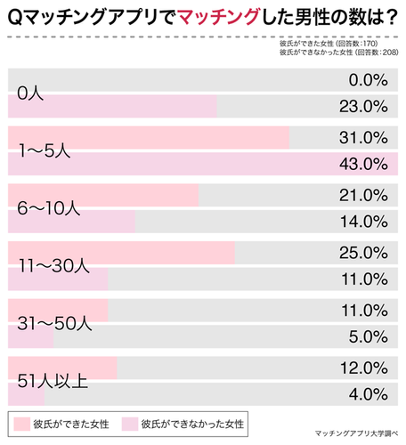 そして、アンケート結果では、恋人ができた男性の方がマッチング人数が多くなっています。