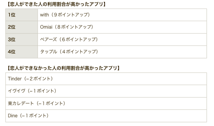 恋人ができた女性とできなかった女性で、利用アプリにどのような差があるかも調べました。