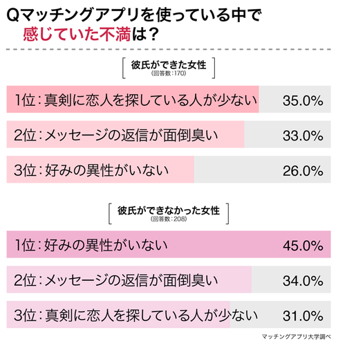 恋人ができた女性とできなかった女性で大きく違いがあったのが、アプリに対する不満でした。