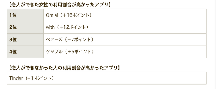 【女性】恋人ができやすいのはOmiaiとwith