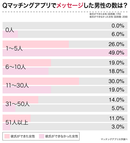 マッチングの次のステップとなるメッセージについても人数を調査しました。