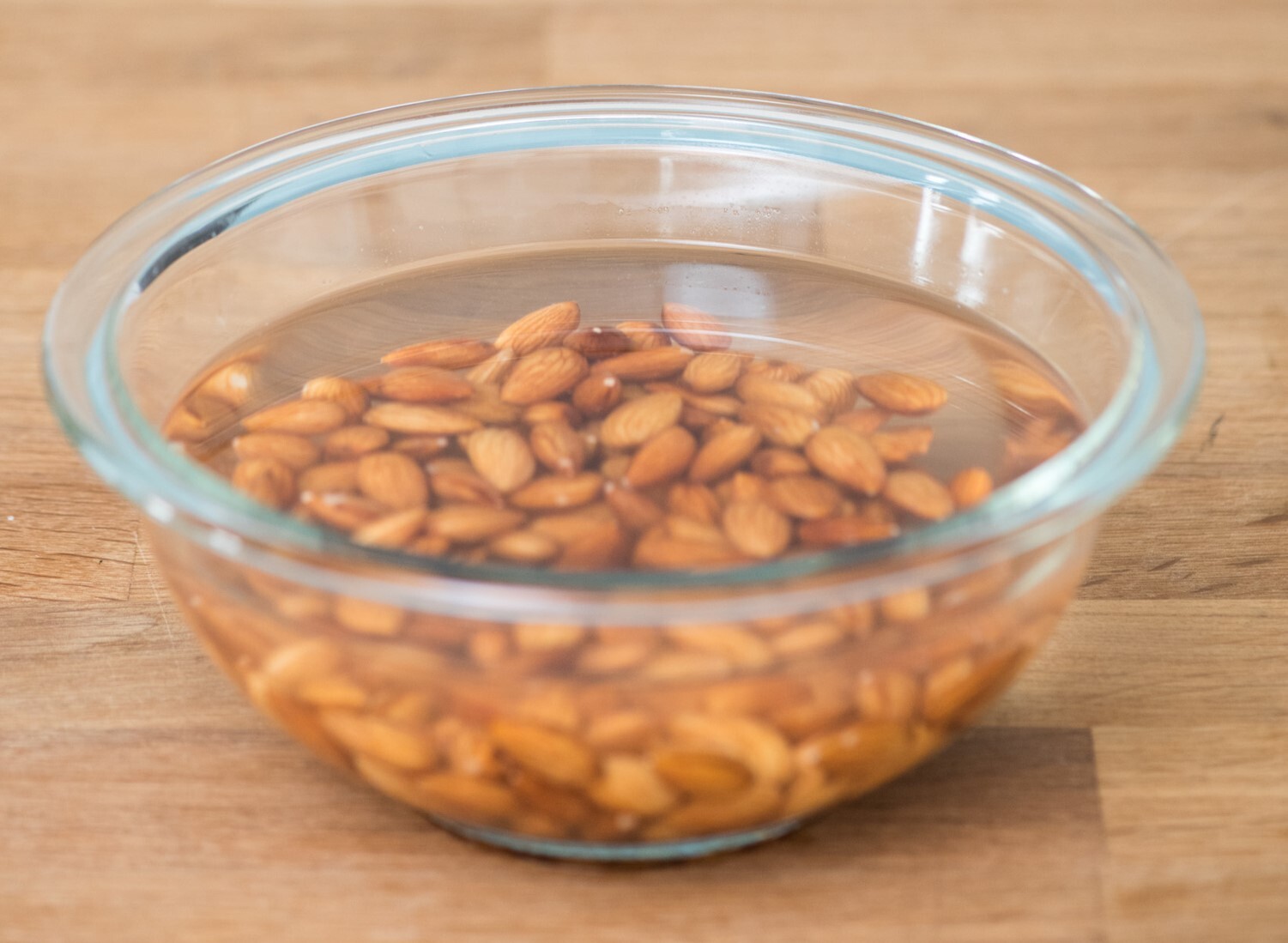 下準備:アーモンドは分量外の水に一晩以上冷蔵庫で浸水させる。※水は入れ替えない。