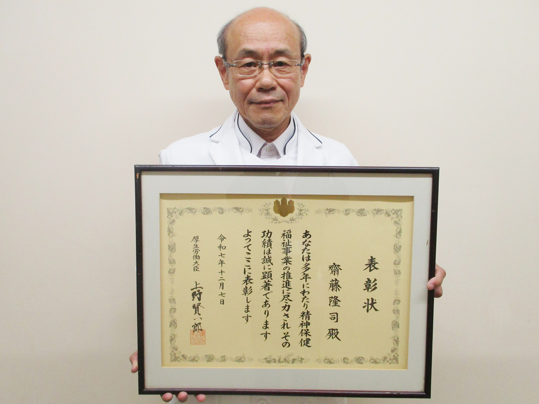 2025年12月7日(日)に行われた表彰式では、長年にわたり精神保健福祉に貢献してきた個人や団体が紹介され、その功績が称えられました。齋藤院長の選出は、地域精神医療に対する継続的な取り組みが評価されたものであり、地域における医療体制の支えとしての役割が示されました。