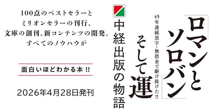 【“100点のベストセラー” 数人で始めた会社がなぜ業界のトレンドセッターに】『ロマンとソロバンそして運ー中経出版の物語』2026年4月28日(火)刊行
