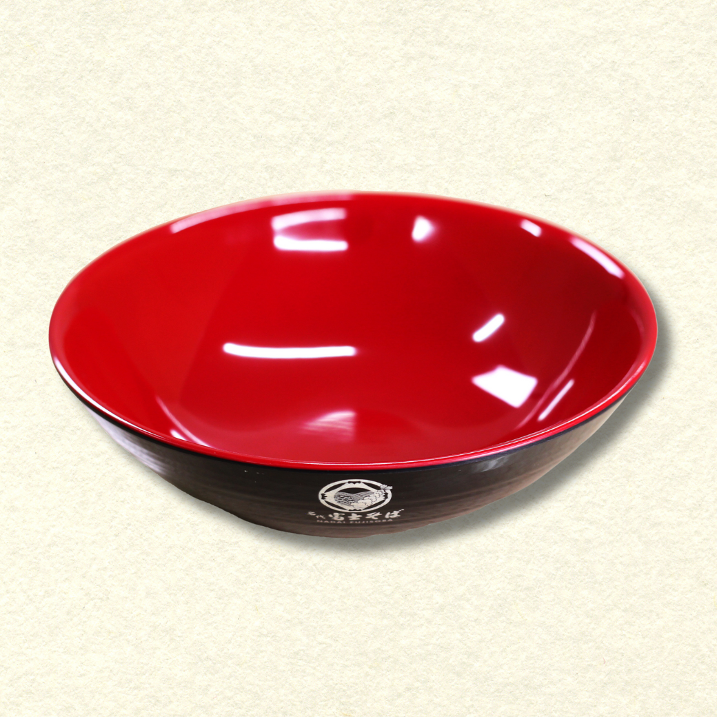 名代富士そばのロゴが入ったかけ蕎麦用の器です。具材もたっぷりのせられる大容量。割れにくく丈夫で、軽量なので、気軽にお使いいただけます。そばだけでなく、スパゲティなどにも使えます。