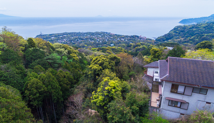 爽やかな海風が心和ませる高台の地形を生かした全室オーシャンビューの別荘。1階洋室は10畳大で、2階は6畳の和室に約15畳のリビング・ダイニングとバルコニーが続き、大人数でものんびりくつろげる空間。効能豊かな温泉が24時間使用可能。出窓からは相模湾の眺望も。