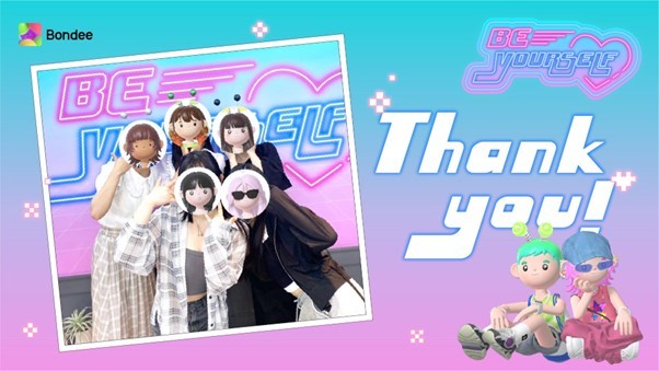 Metadream株式会社が提供するメタバースSNS「Bondee ボンディー」の学生インターンシップBondeeshipが2023年7月28日(金)から7月30日(日)の3日間にSDGsの「ジェンダー平等」をテーマにしたイベント『BE YOURSELF』を原宿で開催しました。