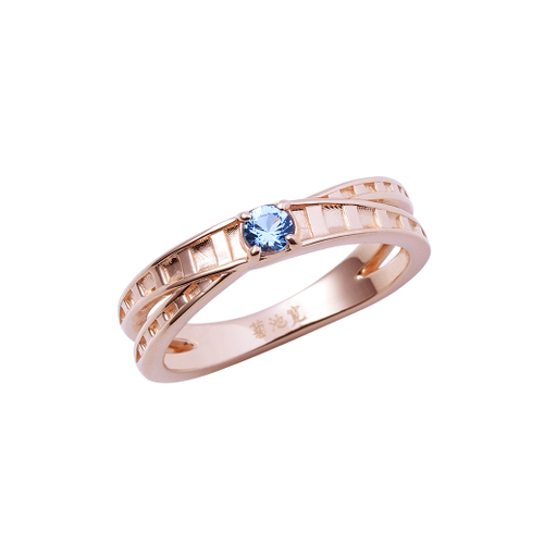 ピンクゴールドコーティングを施した表面にはイメージカラーストーン、内側には名前を刻印しました。
