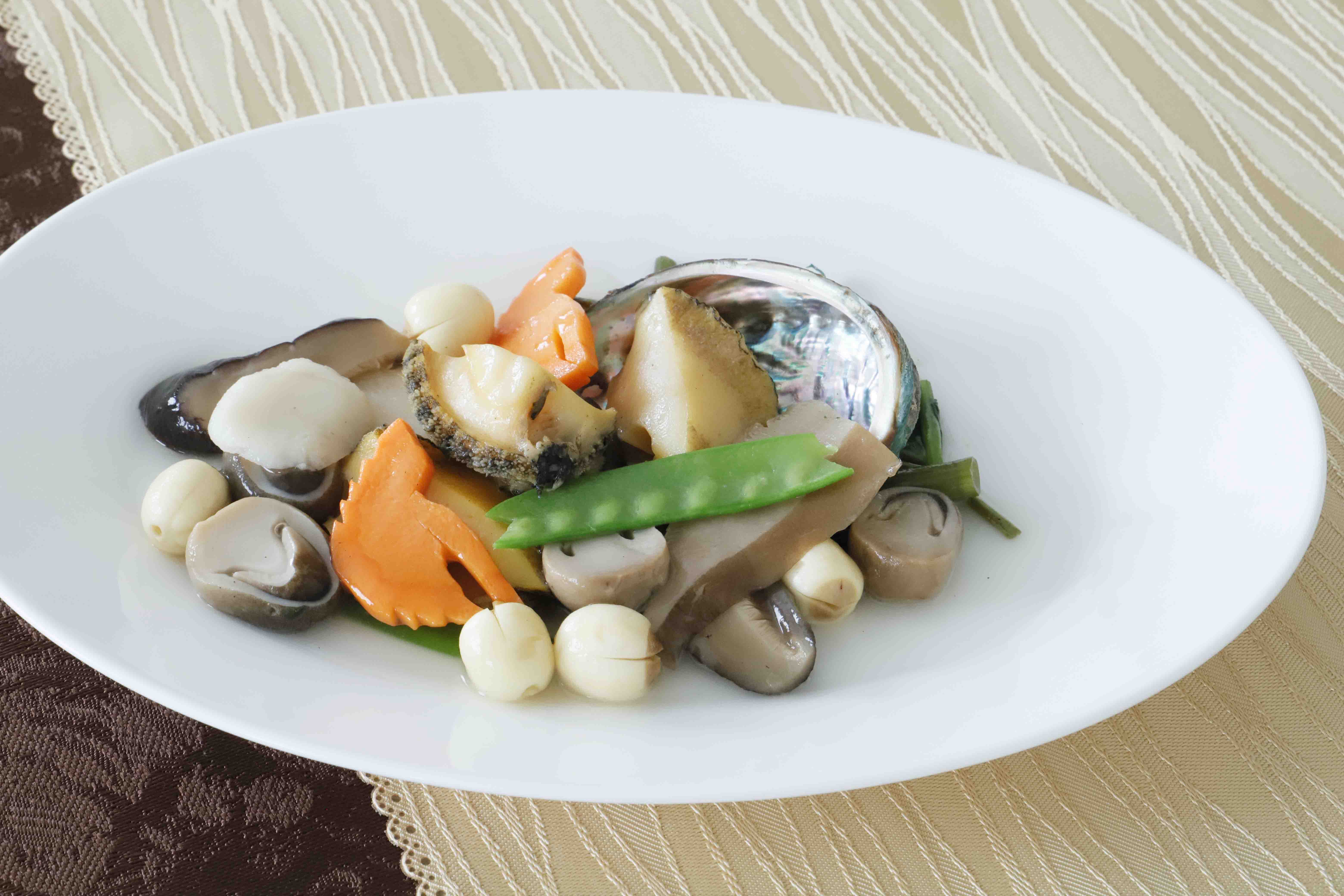 ディナーコースでは、滋味冷製盛合わせから始まり、フカヒレとなまこの薬膳蒸しスープ、蓮の実と白霊茸(アワビタケ)と柔らかアワビのすまし炒め、豚三枚肉と金針菜(キンシンサイ)・木耳(キクラゲ)・なつめの中国みそ煮込み、ハト麦粥、白玉入りココナッツミルク・雪茸(ユキタケ)・棗(ナツメ)添えと、一皿一皿が贅沢で美味しい驚きに満ちています。