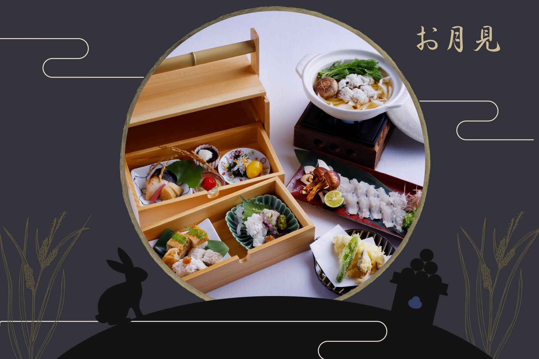 お月見の澄んだ空に光る美しい月を眺めながら、家族や大切な方と共に、「鱧と松茸の秋御膳」と「鱧づくし御膳」の秋の恵みを味わっていただいたお客様限定で、食後の甘味として特製お月見団子を10月限定でご用意いたします。