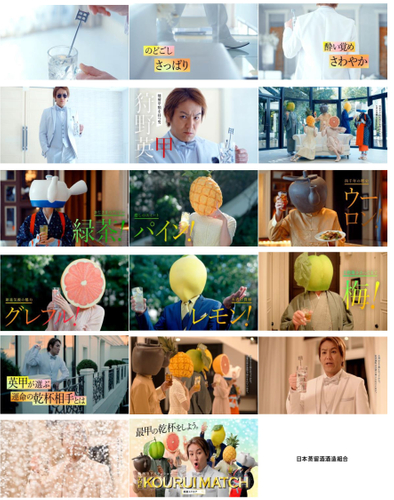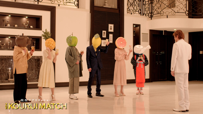 焼酎リアリティショー「THE KOURUI MATCH」 それは、喉越しさっぱり・酔い覚めさわやか・いろいろ割れる、焼酎甲類を持つ男・狩野英甲が、最甲の乾杯を探す物語。様々な割材たちが狩野英甲との乾杯というマッチングを求めて自分の魅力を猛烈アピール。果たして、最後に狩野英甲と乾杯マッチングができるのはどの割材なのか。狩野英甲さんが魅せる多彩な表情や割材たちのリアクションにもご注目ください。