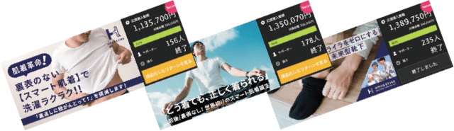 2019年に初めてmakuakeでの挑戦を行い、「裏表のない肌着」「裏表も前後もない肌着」、さらには「裏表もかかともない靴下」と商品を進化させながら3回の挑戦を行い、大変ありがたくも皆様のおかげで回を重ねるごとに、支援額・支援者も順調に増え、少しずつ私たちのアイデアに自信を持ってきております。