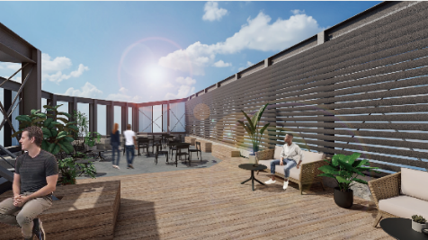 屋上に入居者専用リフレッシュスペースを設置しました。社内コミュニケーションの場、飲食の場として利用可能です。