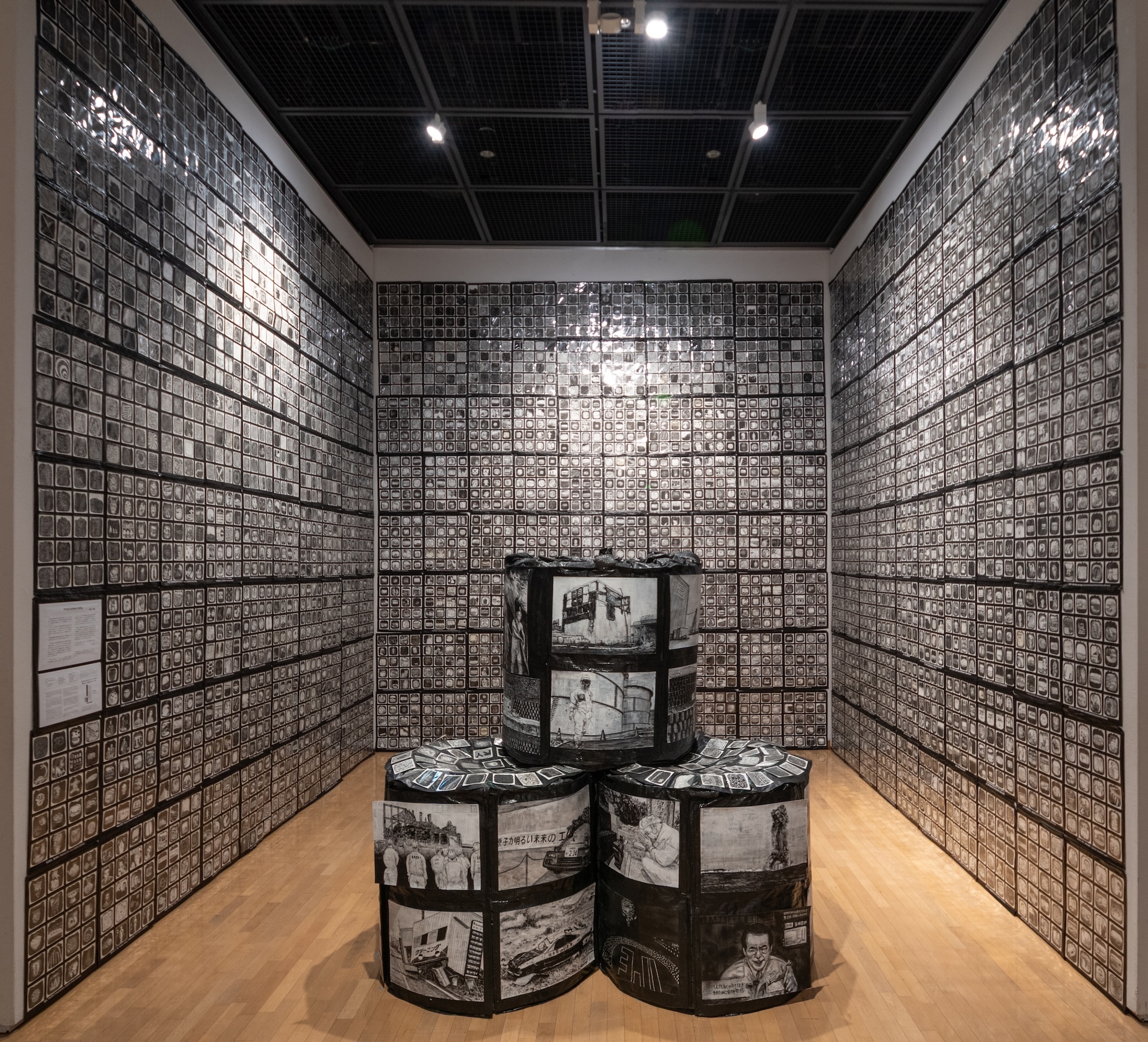 東日本大震災から15年となる2026年。わたしたちの国土はなお、毎日のように地震で揺れ、津波に警戒し、そのたびに原子力発電所の安否に聞き耳を立てている。作者は、過ぎていった日々の積み重ねを、放射能で被災した地域の地方紙や報道などをもとに、誰にでも入手できる簡素な素材とインクボールペンで描いた延べ5,440枚(大震災から5,440日)の素描をもとに、巨大なモノクロームの集積に仕上げた。原発事故という甚大な出来事と、日々の記録とのギャップが、この塊の中で一体のものとなり、わたしたちの「現在」の前にうずたかく積み重なっている。(椹木 野衣)