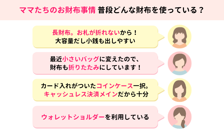 折りたたみ財布を選ぶママからは、バッグの小型化や荷物を減らしたいという声が目立ちました。