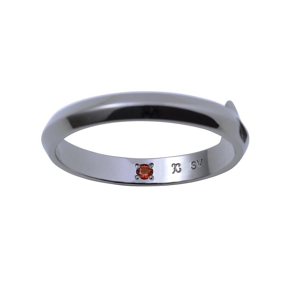 リングの内側には赫眼をイメージしたレッドのストーンを留めました。