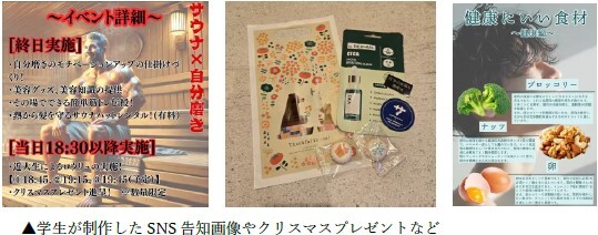 イベント当日の2週間前から、学生が作成した告知画像をSNSにて発信。高い閲覧数、リーチ数を記録しました。また告知後にお客様から店舗へ問い合わせがあるなど一定の反響がありました。さらにイベント当日の学生がロウリュを行った時間帯については平常時の約1.8倍の集客を記録。単なる賑やかしイベントではなく、実績を伴った集客イベントに昇華することができました。