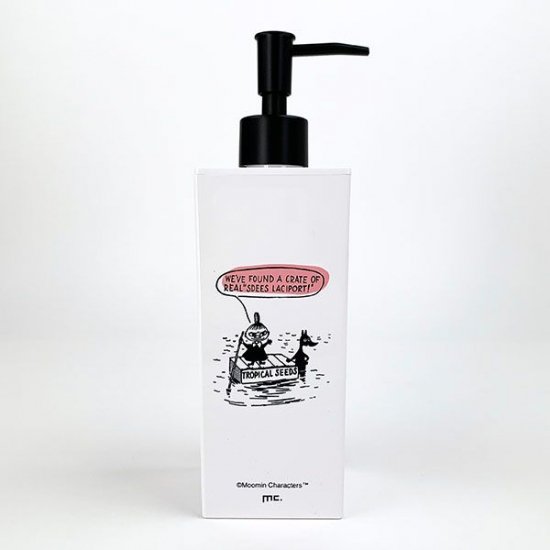 樹脂製で、モノトーンデザインがオシャレなディスペンサーです。中央にはリトルミィがデザインされていて、セリフの部分だけがピンクになったシックなアイテム。本体が白くて清潔感があるので、バスルームや洗面所にもピッタリです。